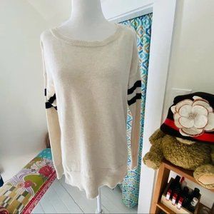 American Eagle Outfitters Preppy Cream Black Striped Oversize Sweater (size XS)