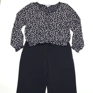 This chic blouse from American Eagle Outfitters features a striking black and white floral pattern. You will love the long sleeve designed with a slight puff and elastic cuffs for a stylish touch. Perfect for a casual yet polished look, this top is a versatile addition to any wardrobe.