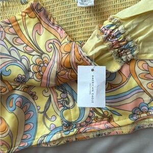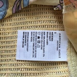 This eye-catching cropped tank with cutouts from American Eagle Outfitters showcases a lively colorful design, complete with a playful tie front and sternum and ribcage cutouts. The cropped style is perfect for adding a touch of flair to your outfit, making it a standout piece for any occasion.