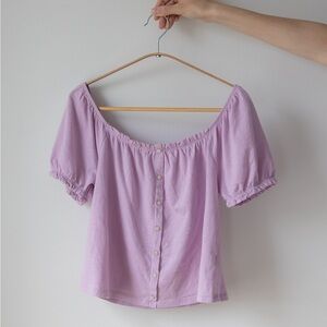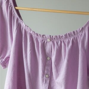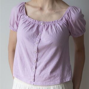 American Eagle Outfitters Purple Puff Sleeve Ruched Blouse