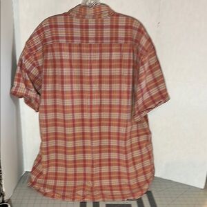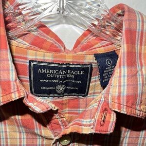 This casual button-down shirt from American Eagle Outfitters features a relaxed fit in a warm red and brown color scheme. Made from lightweight fabric, it's perfect for everyday wear and adds a touch of effortless style to your wardrobe.