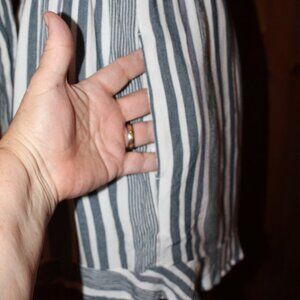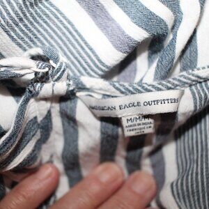 Partially lined in shorts, this romper will take you through the entire summer. Crossed bodice with skinny adjustable straps ties in back. Approximately 28" long, the hem has a tiny ruffle and there is a defined elastic waist with POCKETS! Pit to pit is approximately 18" due to the crossed nature of the front. Light viscose fabric, this fun piece is pre-loved from a smoke-free. pet-free home.