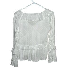American Eagle Outfitters Ruffled Deep V-neck Double Ruffled Sleeve Swiss Dot XS