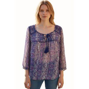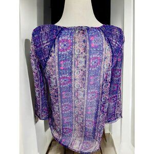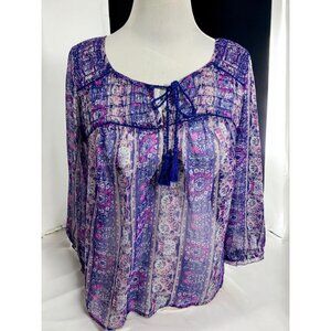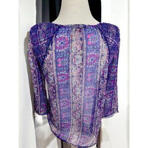 American Eagle Outfitters Sheer Boho Peasant Blouse M Purple Pink Paisley Print