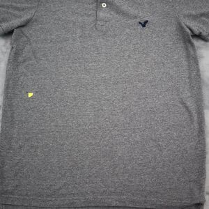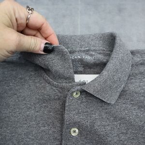 American Eagle Outfitters Shirt Mens M Gray Short Sleeve Button Logo Collar Polo