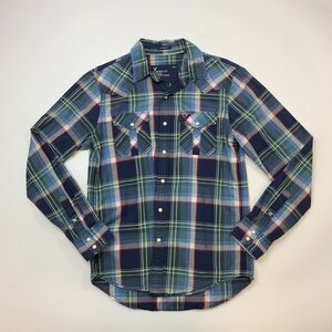 AMERICAN EAGLE OUTFITTERS SHIRT MENS S SMALL MULTI PLAID LONG SLEEVE BUTTON UP