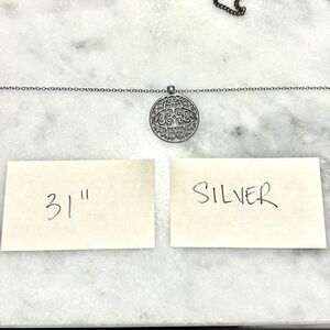 American Eagle Outfitters Silver-tone Chain Filigree Round Pendant Necklace 31"