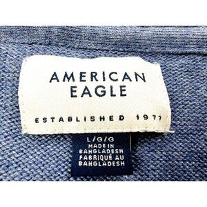 American Eagle Outfitters Size Large Men's Blue V Neck Long Sleeve Logo Sweater
