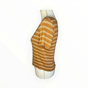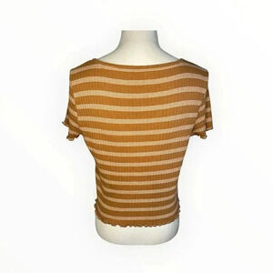 American Eagle Outfitters Size Large Brown & White Striped Button Front Crop Top