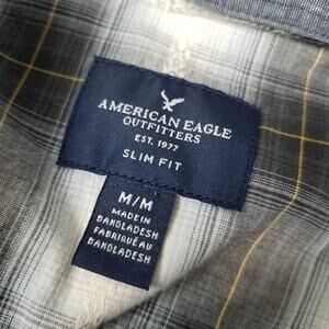American Eagle Outfitters Slim Fit Blue Gray White Plaid Western Shirt Size M