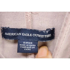 This is an American Eagle Outfitters Long Bell Sleeve Dress that is a size Small. It is 95% Viscose and 5% Elastane. The sleeves have slits at the top of the arms and ties around the elbow and then the bell. Laying flat, it measures: Armpit to armpit-16.5" and the length is 34". It is in good condition. A very boho, hippie style dress.