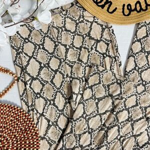Turn heads with these stylish American Eagle Outfitters snake print bell-bottom flare pants! Featuring a bold snake print design and a comfy pull-on style, these pants combine fashion and function effortlessly. The lightweight, stretchy fabric hugs your curves while flaring out for a trendy, retro-inspired silhouette. Perfect for a night out, festival, or casual chic look. In excellent condition and from a smoke-free home. Size small!