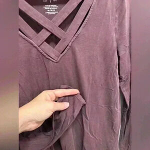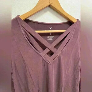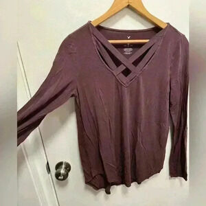 American Eagle Outfitters women’s pullover long sleeve top Soft & Sexy size medium. V-neck shirt with criss cross pattern in the front in a dark plum purple color made of 95% viscose and 5% elastane. Buttery soft and comfortable shirt you will want to wear this top all of the time. Pre-owned and in very good condition.
