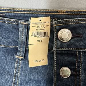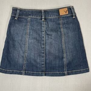 The American Eagle Outfitters Stretch A-Line Skirt in size 0 is a classic blue denim skirt perfect for casual occasions. Made of a comfortable cotton blend material, this skirt features a mid-rise and a button closure. It has a short length and is machine washable, making it easy to care for. This versatile skirt can be worn in all seasons, including summer, fall, and spring, adding a stylish touch to any wardrobe.