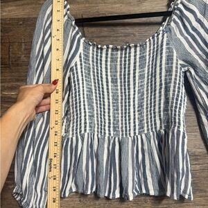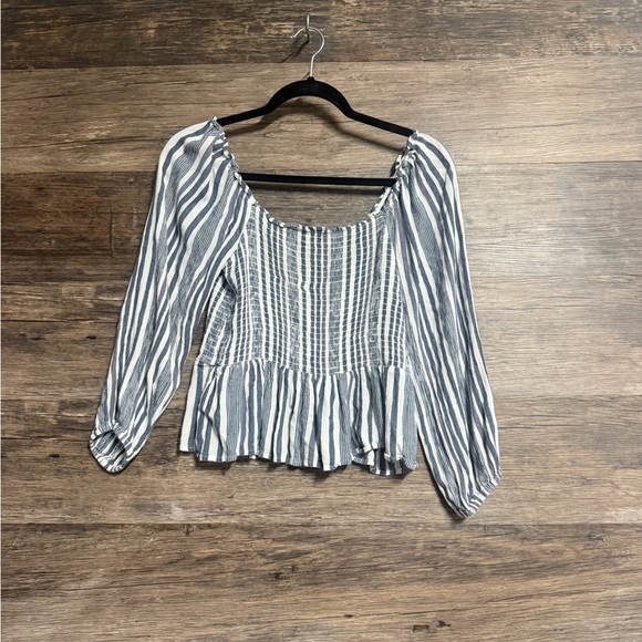 American Eagle Outfitters Striped Blue White Long Sleeve Crop Top