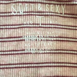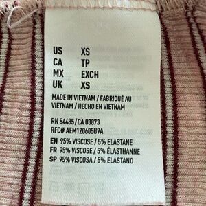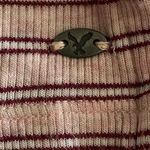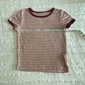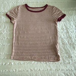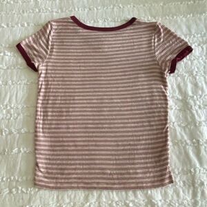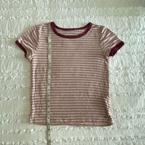 American Eagle Outfitters Striped Maroon and Pink Short Sleeve Tee