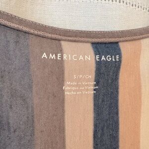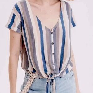 American Eagle Outfitters Striped V-Neck Button/Tie Short-Sleeve Top