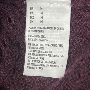 American Eagle Outfitters Sweater Women Medium Red Burgundy Open Knit Zip Casual