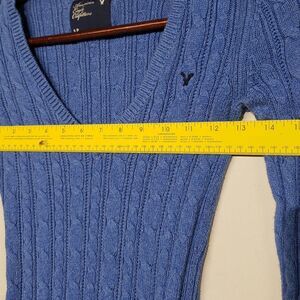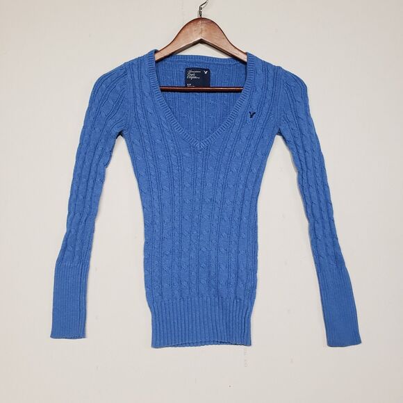American Eagle Outfitters Sweater Womens S Y2K Cable Knit V Neck Vintage Blue
