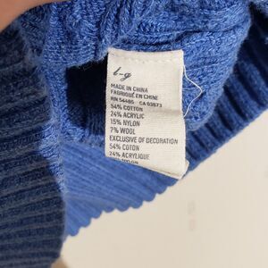 This American Eagle sweater captures the classic Y2K style with a comfortable cable knit texture and a versatile V-neck cut in a lovely dark periwinkle color.