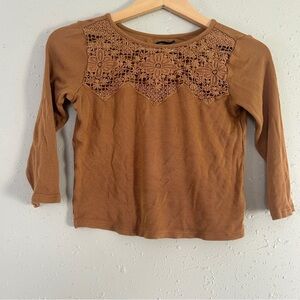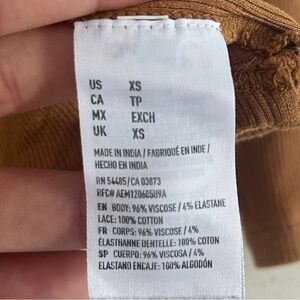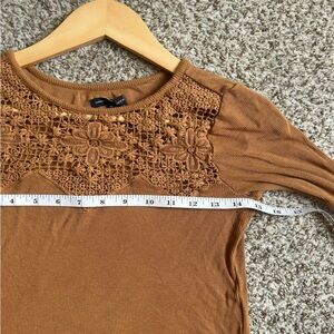 🦋 American Eagle Outfitters Tan Cropped Crochet Blouse Casual Stretch Fall Comfy