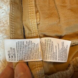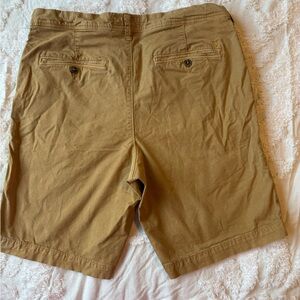 These tan flat front shorts from American Eagle Outfitters offer a classic and versatile style. Crafted from durable cotton twill, they provide comfort and a clean look for any casual occasion.