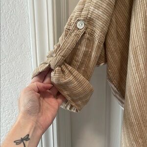 American Eagle Outfitters Tan and Cream Casual Button Down Shirt