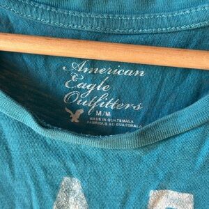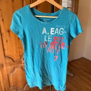 American Eagle Outfitters Teal Blue Graphic women’s Tee Y2K Med A7