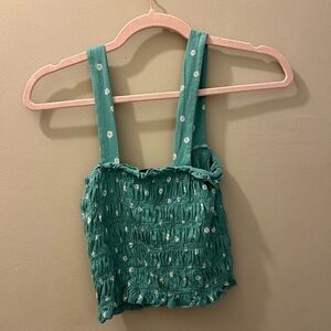 American Eagle Outfitters Teal Daisy Smocked Crop Top