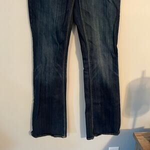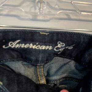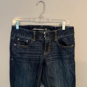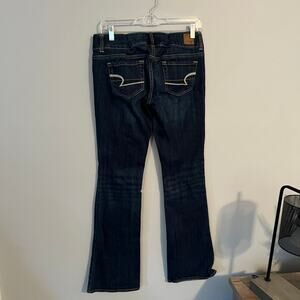 American Eagle Outfitters The Artist Flared Leg Jeans in women's Size 6. Popular, discontinued style. Waist measures approx 30 in around, rise approx 7.25 in, inseam approx 32 in, leg opening approx 9.25 in. Jeans are in very good used condition with no flaws or stains other than some minor wash wear. Please see close-up pictures for condition details.