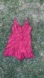 Size large polka dot ref romper! It’s spaghetti strap and has a lace up tie front and a zipper! The bottoms are flowy shorts and it has a tiny polka dot pattern! There is a loose string inside unnoticeable that doesn’t affect the functionality as pictured