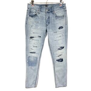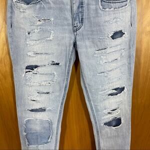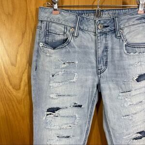 American Eagle Outfitters, Tomgirl, Super Distressed. Size 0 Reg. Light Wash. In excellent condition!
