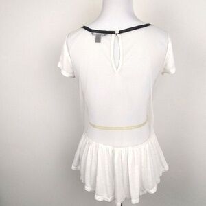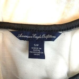 American Eagle Outfitters white lace top with black beading. Women's size S/P. Eyelet with button hold loop closure in the back. In excellent condition!