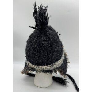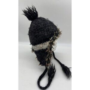 American Eagle Outfitters Trapper Hat With Faux Fur & Pom Pom Black/Gray Wool/Al
