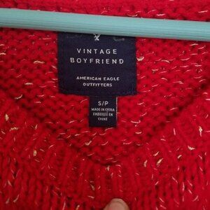 This eye-catching red sweater from American Eagle Outfitters offers a fashionable twist on the classic boyfriend style. The sweater features a vibrant hue that stands out in any wardrobe, while the soft knit material ensures comfort and warmth throughout the seasons. The small size makes it a flattering fit for a variety of body types.