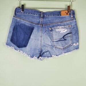 American Eagle Outfitters AEO Vintage Hi-Rise Festival Distressed Destroyed Two Toned Button Fly Frayed Hem Shorts Size 8