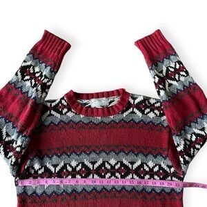 Men’s size medium Nordic pattern vintage sweater by American Eagle Outfitters. Ramie and cotton heavyweight blend with Crewneck neckline. In good condition. A few loose threads at the hem of one sleeve and at the neckline as seen in the photos. Otherwise no flaws. Measurements shown in photos.