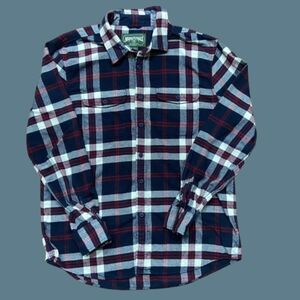 American Eagle Outfitters Vtg Flannel Button Front Plaid Navy Red Men's Large