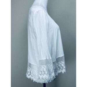 American Eagle Outfitters® White 3/4 Sleeve Blouse w/Embroidered Lace S/P India