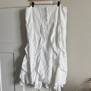 Chic white midi skirt with a flowing design. Perfect for versatile styling.