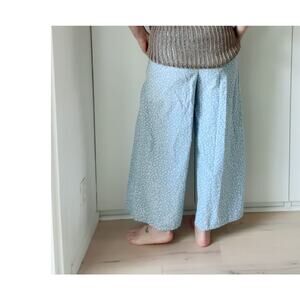 American Eagle Outfitters Wide Leg Cropped Pants Blue Floral Print Size XS