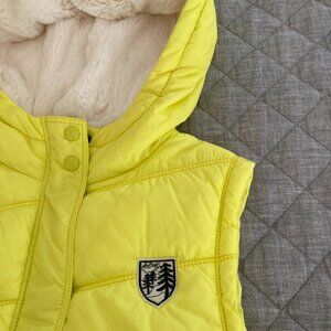 Like new American Eagle Outfitters Winter Vest with plaid lining and faux fur hood interior. Yellow, Size L
