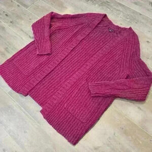 American Eagle Outfitters Women Sweater Medium Purple Cardigan Open Cable Knit Size XS/S In Excellent Condition.