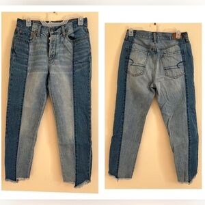 American Eagle Outfitters Womens Denim Pants 4 Blue Jeans Tapered Raw Hem Two Tone Vintage High Rise