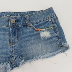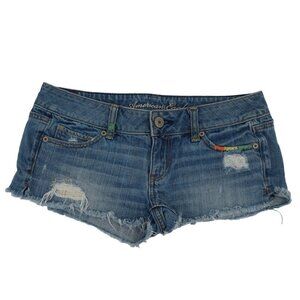 American Eagle Outfitters Womens 2 Cut Off Distressed Raw Blue Denim Jean Shorts