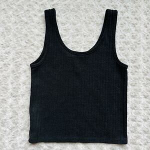 American Eagle Outfitters Womens Black Cotton Blend Cropped Ribbed Tank Top XS