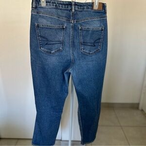 American Eagle Outfitters Women's Blue Distressed Curve Mom Jeans