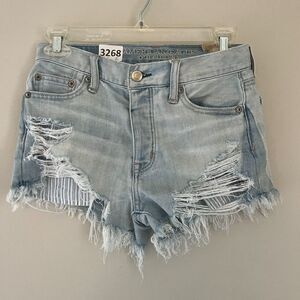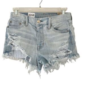 American Eagle Outfitters Womens Blue Hi Rise Raw Hem Denim Shorts Size 00