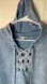 American Eagle Outfitters Women's Blue White Washed Lace-up Front Hoodie SZ S