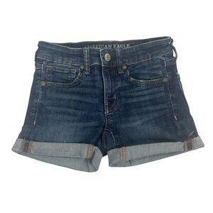 American Eagle Outfitters Womens Dark Wash Denim Shorts Size 2 Midi Stretch